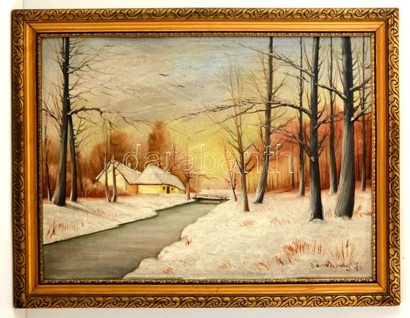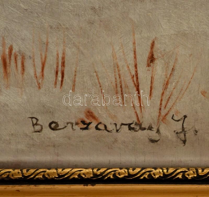 Berzevay jelzéssel: Téli patakpart, olaj, farost, díszes keretben, 49×...
