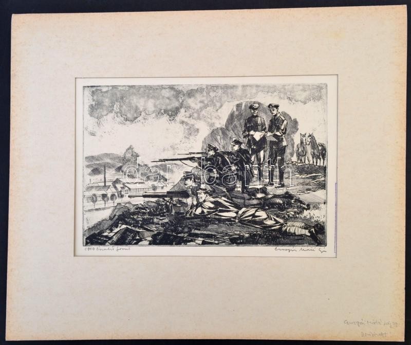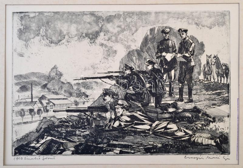 Csurgói Máté Lajos (1931-2001): 1919 Északi front. Rézkarc, papír, jel... https://www.darabanth.com/hu/290-Gyorsarveres/290.0/Festmeny-mutargy-papirregiseg-egyeb/Festmenyek-es-grafikak~300103/Csurgoi-Mate-Lajos-1931-2001-1919-Eszaki-front-Rezkarc-papir-jelzett-22x32-cm~II1530372