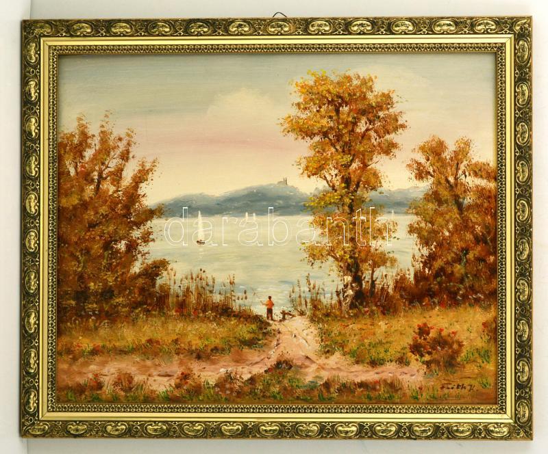 Leírás: Feith Károly (1930-): Füred. Olaj, farost, jelzett, keretben, 40×50 cm