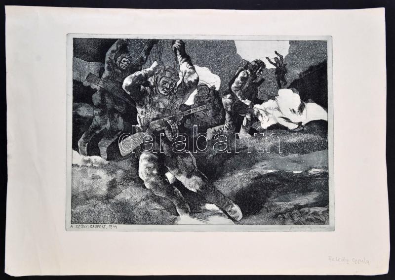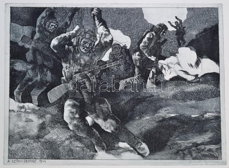 Feledy Gyula (1928-2010): A Szőnyi csoport, 1944. Rézkarc, papír, jelz... https://www.darabanth.com/hu/290-Gyorsarveres/290.0/Festmeny-mutargy-papirregiseg-egyeb/Festmenyek-es-grafikak~300103/Feledy-Gyula-1928-2010-A-Szonyi-csoport-1944-Rezkarc-papir-jelzett-29x39-5-cm~II1530355