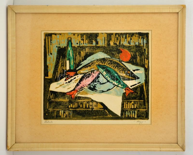 Hegyi György (1922 - 2002): Halak. Színezett linó, papír, jelzett, üv... https://www.darabanth.com/hu/290-Gyorsarveres/290.0/Festmeny-mutargy-papirregiseg-egyeb/Festmenyek-es-grafikak~300103/Hegyi-Gyorgy-1922--2002-Halak-Szinezett-lino-papir-jelzett-uvegezett-keretben--24C39730~II1532492