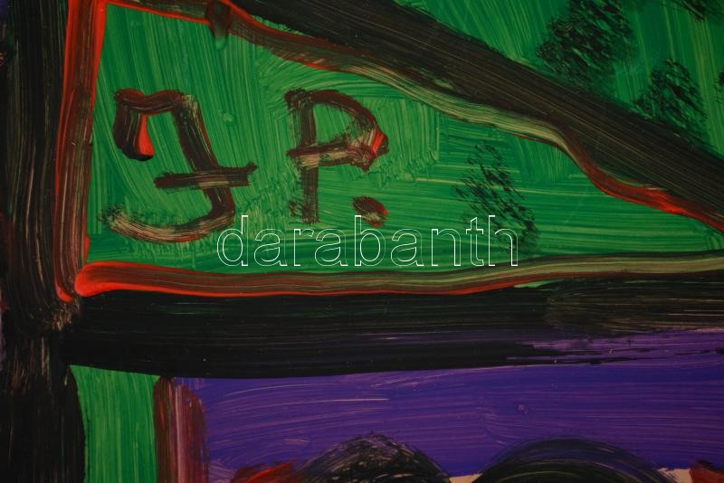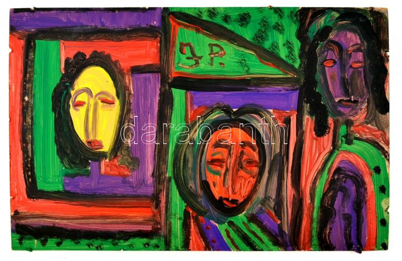 Leírás: JP jelzéssel: Arc-kollázs, olaj, farost, 34×53 cm