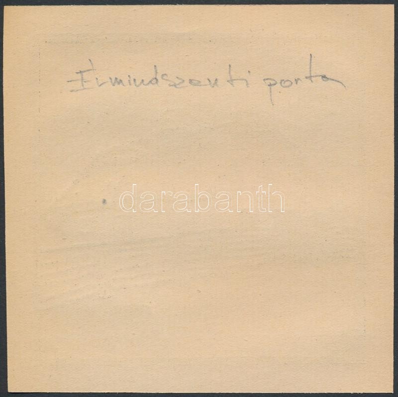 Leírás: Kós Károly (1883-1977): Érmindszenti porta, színes linómetszet, papír, jelzés nélkül, hátoldalon feliratozva, 12×12 cm