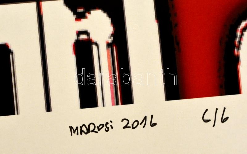 Leírás: Marosi György (1964- ): Vörös és fekete, c-print, papír, jelzett, számozott (6/6), 45×32 cm