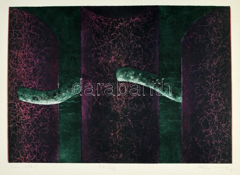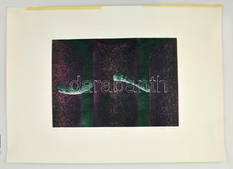 Leírás: Nagy Imre Gyula (1941- ): Cím nélkül, szitanyomat, papír, jelzett, számozott (3/5), felcsavarva, 35×50 cm