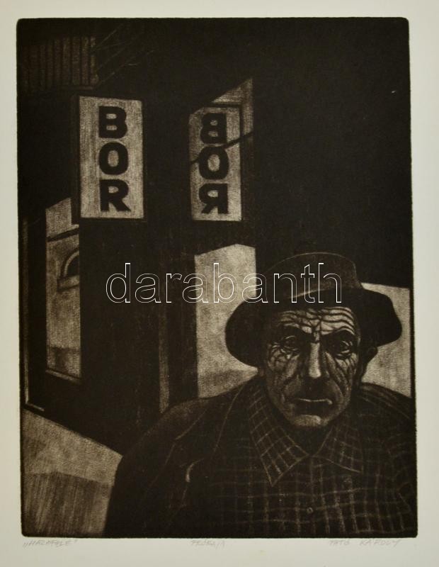 Leírás: Pató Károly (1950-): Hazafelé. Mezzotinto, próba/1, jelzett, 27x20 cm