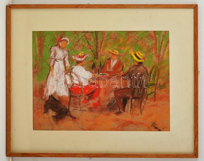 Leírás: Rónai jelzéssel: Asztaltársaság, pasztell, papír, paszpartuban, üvegezett fa keretben, 24×33,5 cm