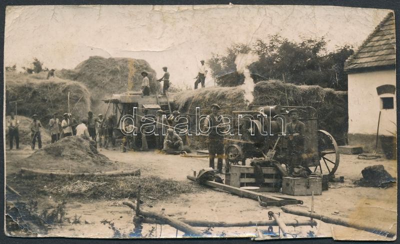 1937 Aratók cséplőgéppel, Kisbér, 6x10 cm. https://www.darabanth.com/hu/290-Gyorsarveres/290.0/Festmeny-mutargy-papirregiseg-egyeb/Foto~100020/1937-Aratok-cseplogeppel-Kisber-6x10-cm~II1528034