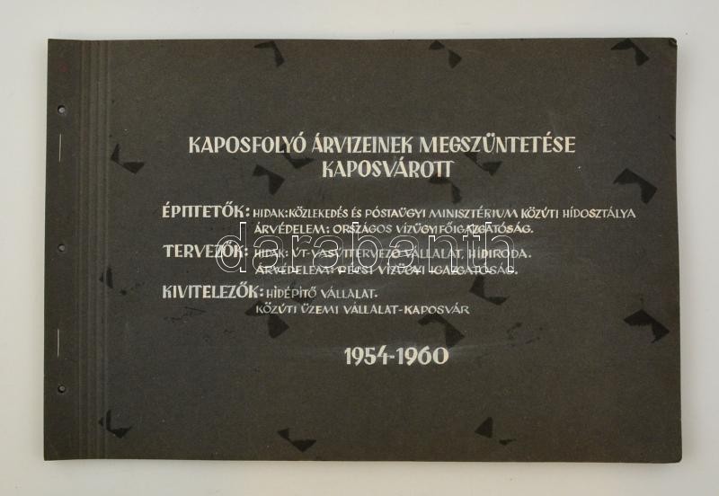Leírás: 1954-1960 Kapos folyó árvizeinek megszüntetése Kaposvárott, 28 db fotó papír albumban