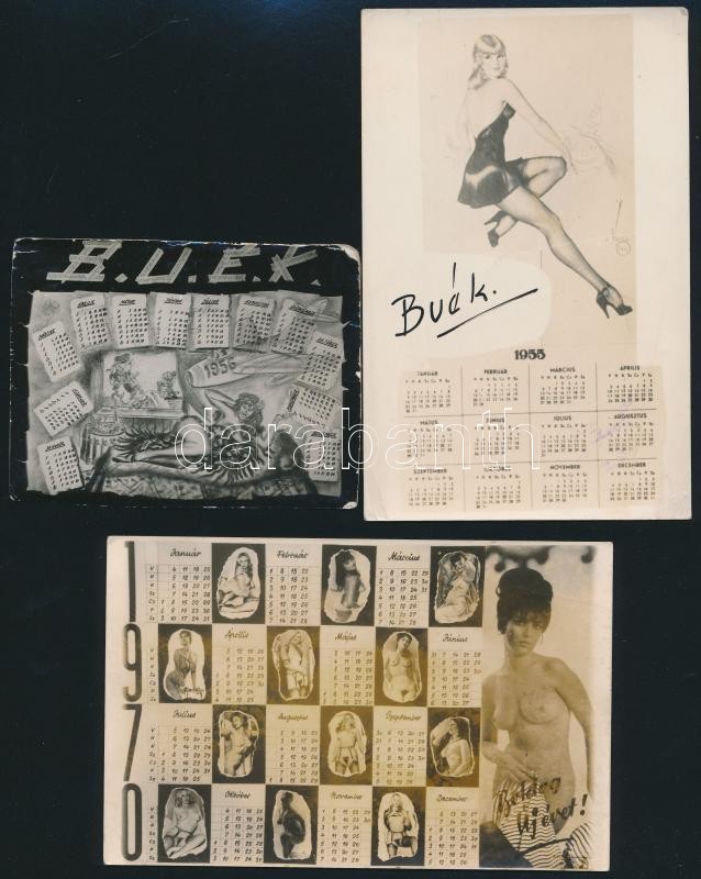 1955-1970 3 db erotikus zsebnaptár, 7x9,5 és 9x14 cm közötti méretekbe... https://www.darabanth.com/hu/290-Gyorsarveres/290.0/Festmeny-mutargy-papirregiseg-egyeb/Foto~100020/1955-1970-3-db-erotikus-zsebnaptar-7x9-5-es-9x14-cm-kozotti-meretekben~II1531051
