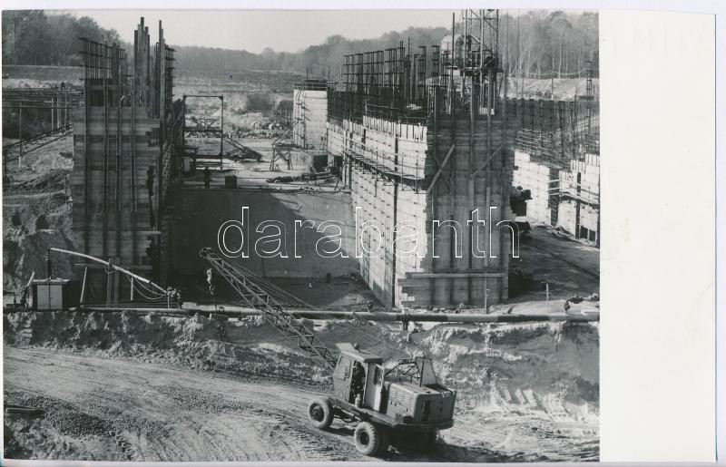 Leírás: 1971 Sió-csatorna árvíz kapujának építése, Magyar Hírek Szerkesztősége fotó, 11x18cm