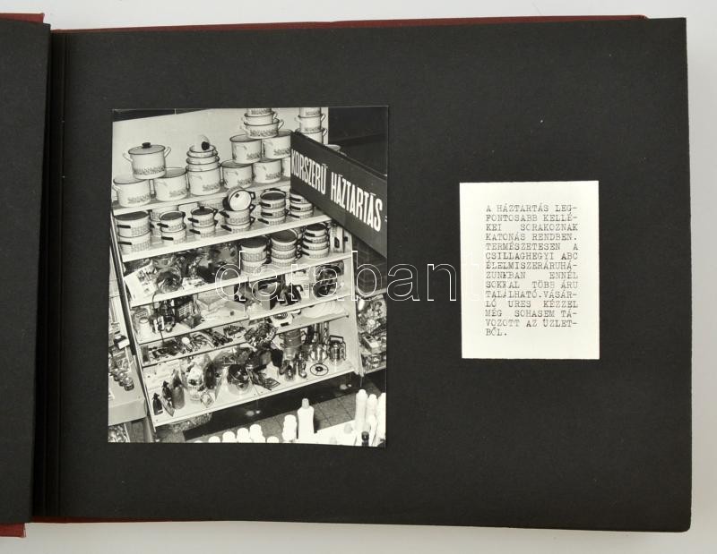 Leírás: 'Korszerű Háztartás, Több Szabadidő', Észak-Budai ÁFÉSZ propaganda fotóalbum, 40 db fotó feliratozva, feliratozott füzött harántalakú egészvászon mappában