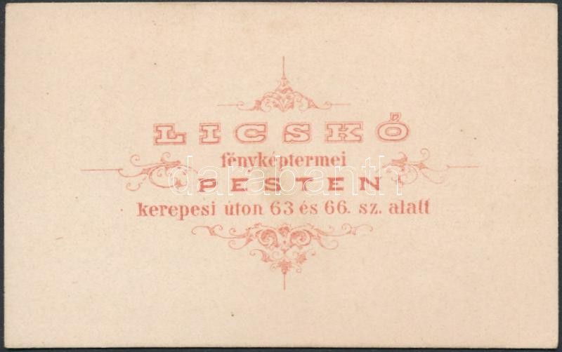 Leírás: cca 1863 Licskó pesti műtermében készült, vizitkártya méretű fénykép, 10x6,5 cm