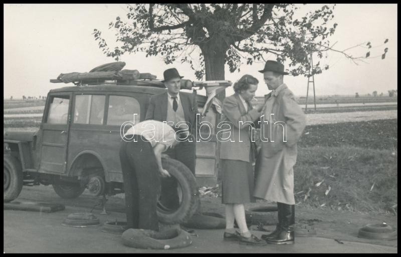 cca 1930 Kerékcsere, fotólap, 9x14 cm. https://www.darabanth.com/hu/290-Gyorsarveres/290.0/Festmeny-mutargy-papirregiseg-egyeb/Foto~100020/cca-1930-Kerekcsere-fotolap-9x14-cm~II1527876