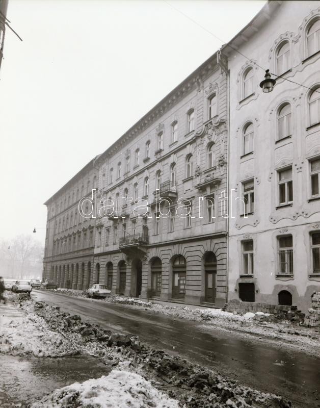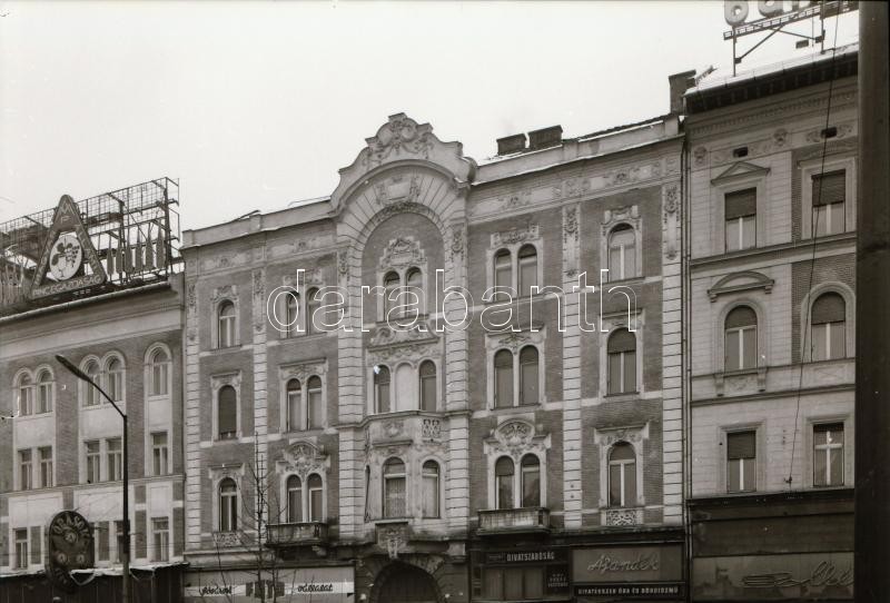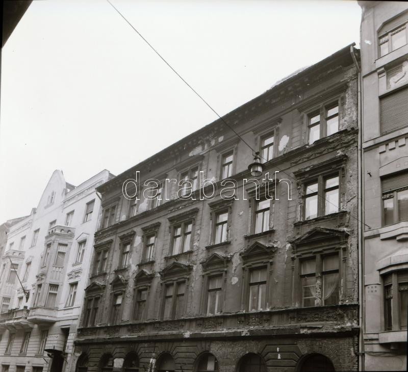 cca 1970 Budapesti épületekről készült negatív felvételek, az épületek címe feliratozva a tasakon, három korábban el nem adott tétel összevonásából 17 db szabadon felhasználható vintage negatív, 6x7 cm