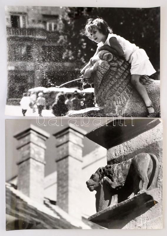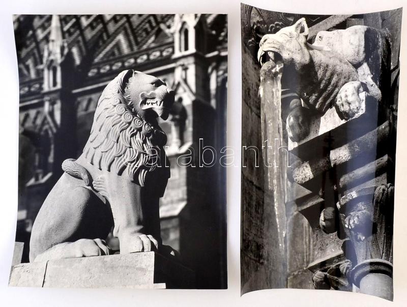 Leírás: cca 1970 Budapesti oroszlánok, 4 db jelzett vintage fotó, 39x26 cm