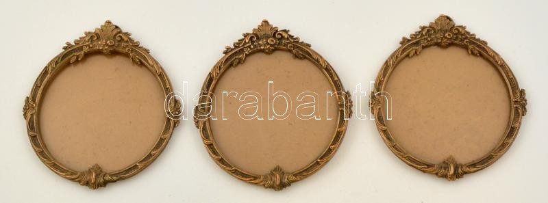 Leírás: 3 db díszes réz fotókeret, üveggel, d (belső): 9,5 cm, 14×12,5 cm