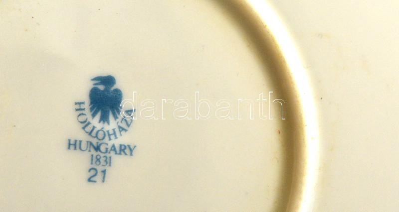 Leírás: Hollóházi tortatál, matricás, jelzett, enyhén kopott aranyozás, d: 32 cm