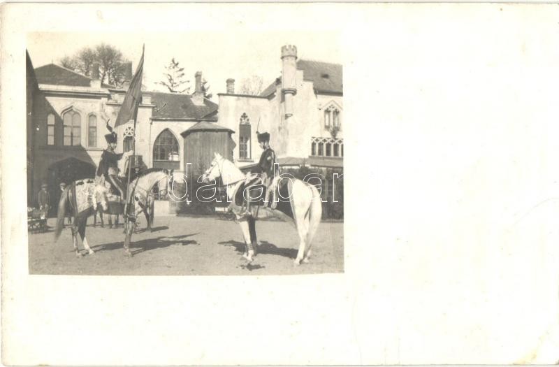 Parnó, Parchovany; Gróf Andrássy Géza kastély lovas bandériumokkal, valószínűleg Rákóczi újratemetésekor / castle horse banderiums probably before the funeral of Rákóczi II