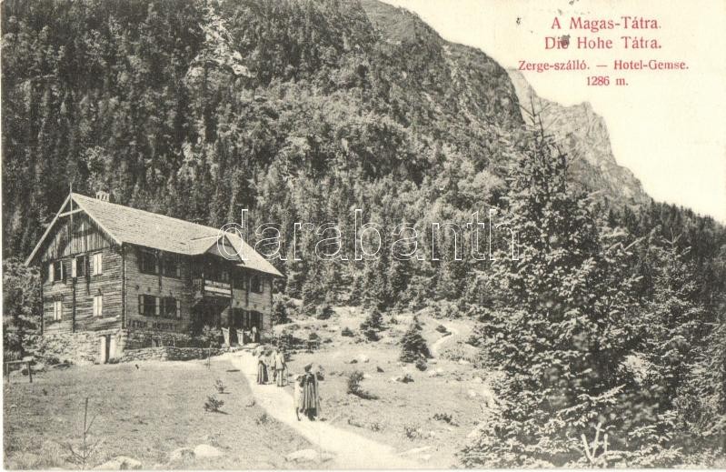 Tátra, Zerge-szálló. Divald Károly 1442-1909. / Hotel Gemse https://www.darabanth.com/hu/290-Gyorsarveres/290.0/Kepeslapok/Felvidek~300008/Tatra-Zerge-szallo-Divald-Karoly-1442-1909-Hotel-Gemse~II1531595