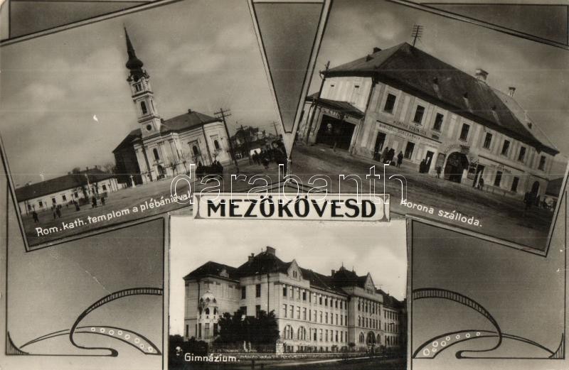 Mezőkövesd, Római katolikus templom a plébániával, Korona szálloda, borozó és sörcsarnok, étterem, gimnázium, Szent József nyomdája, Art Nouveau, Balázs Ferencz kiadása (b)