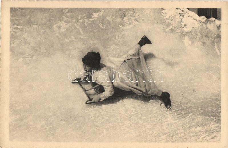 Sledding lady in skirt, 20088 Wehrli A-G. https://www.darabanth.com/hu/290-Gyorsarveres/290.0/Kepeslapok/Sport~300090/Sledding-lady-in-skirt-20088-Wehrli-A-G~II1532500