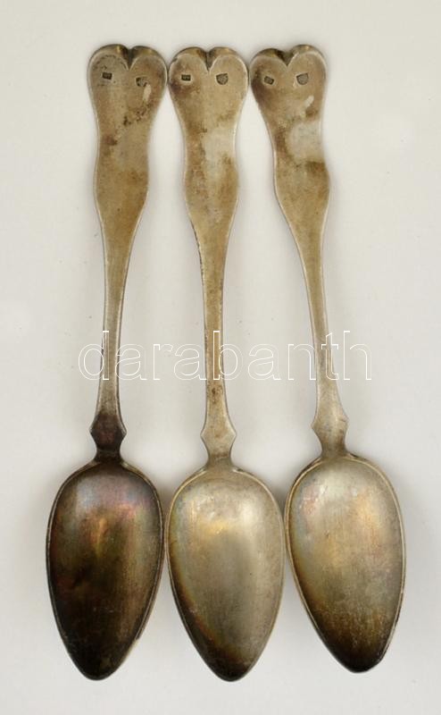 Leírás: Antik ezüst (Ag.) kanál (3 db), mesterjeggyel, jelzett (1863), apró horpadásokkal, h:21,5 cm, nettó: 209 g