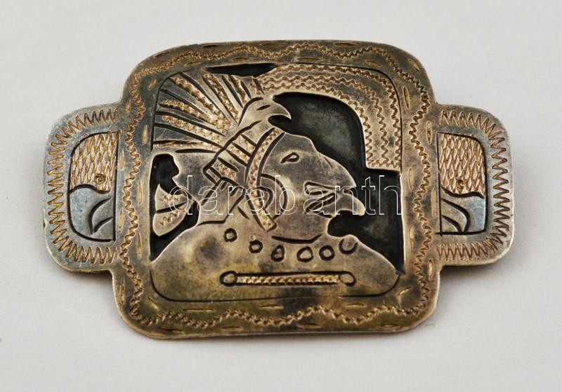 Leírás: Ezüst(Ag) bross inka fejjel, jelzett, 3x4,5 cm, nettó: 8,2 g