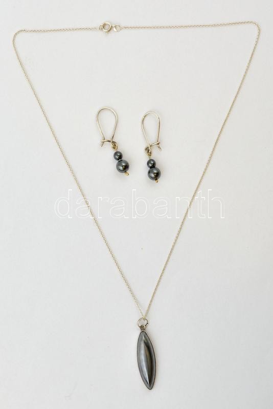 Leírás: Ezüst(Ag) függő láncon, hematit kővel, fülbevalóval, jelzett, bruttó: 5,6 g