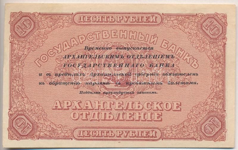 Russian Civil War / North Russia / Archangel 1918. 10 Rubles C:XF,VF