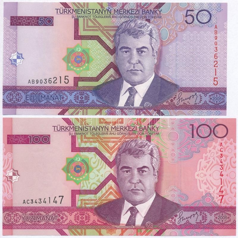 Turkmenistan 2005. 50 Manat + 100 ... https://www.darabanth.com/hu/290-Gyorsarveres/290.0/Numizmatika/Kulfoldi-bankjegyek~200012/Turkmenisztan-2005-50M-plus-100M-TI--Turkmenistan-2005-50-Manat-plus-100-Manat-CUNC~II1527774
