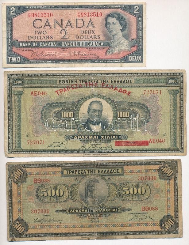Vegyes: Kanada 1954. 2$ + Görögország 1926. 1000D + 1932. 500D + 2db U... https://www.darabanth.com/hu/290-Gyorsarveres/290.0/Numizmatika/Kulfoldi-bankjegyek~200012/Vegyes-Kanada-1954-2USD-plus-Gorogorszag-1926-1000D-plus-1932-500D-plus-2db-UPU-valasz-kupon-1946-es-~II1530308