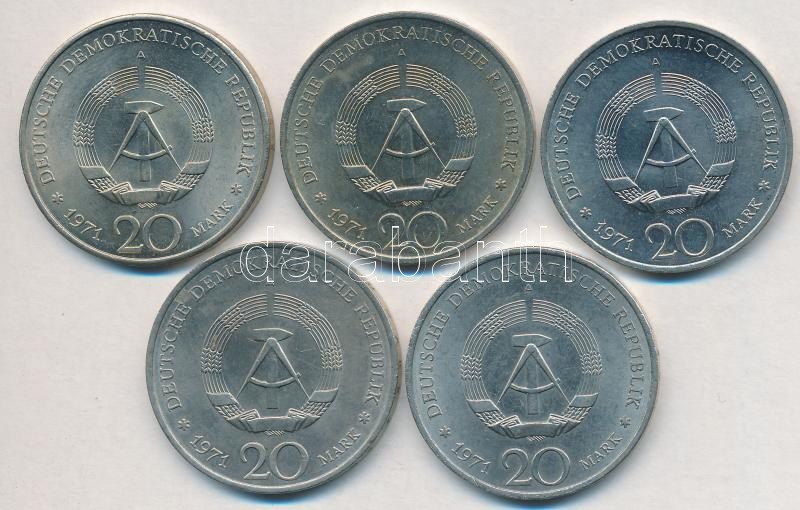 Leírás: NDK 1971A 20M "Ernst Thälmann" (5x) T:1-,2 GDR 1971A 20 Mark "Ernst Thälmann" (5x) C:AU,XF