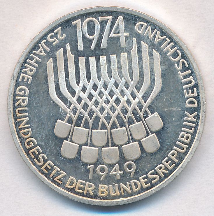 NSZK 1974F 5M Ag "25 éves az Alkotmány" T:2 patina FRG 1974F 5 Mark Ag... https://www.darabanth.com/hu/290-Gyorsarveres/290.0/Numizmatika/Kulfoldi-fem-es-ezustpenzek~200013/NSZK-1974F-5M-Ag-25-eves-az-Alkotmany-T2-patina-FRG-1974F-5-Mark-Ag-25th-Anniversary--Constit~II1530812