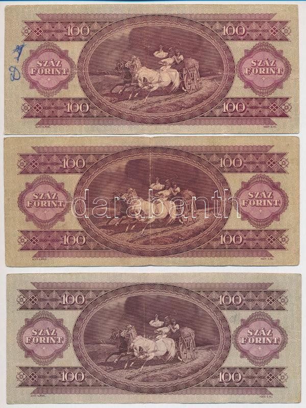 1957-1993. 100Ft (7xklf) T:III https://www.darabanth.com/hu/290-Gyorsarveres/290.0/Numizmatika/Magyar-bankjegyek~200007/1957-1993-100Ft-7xklf-TIII~II1529779