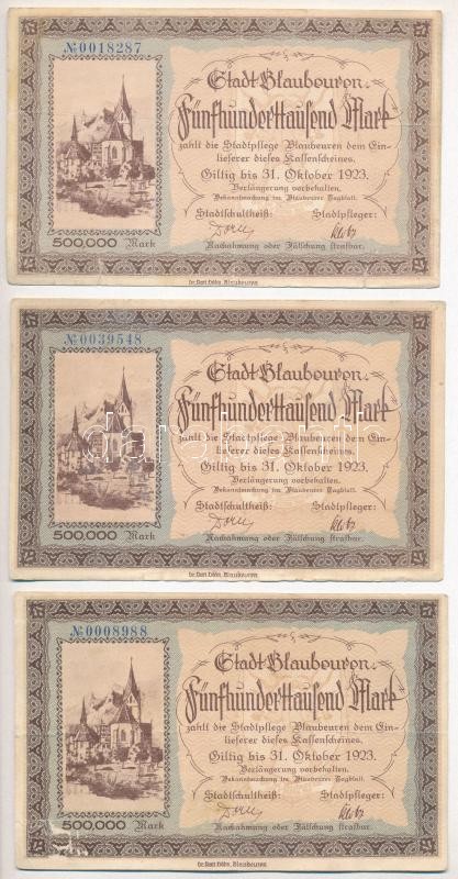 Germany / Weimar Republic / Blaubeuren 1923. 500.000 Mark (9x) C:VF,F tear