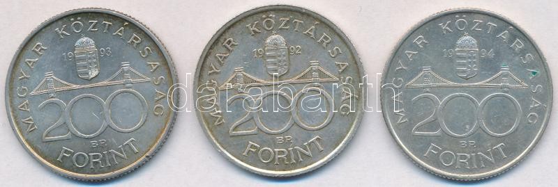 Leírás: 1992. 200Ft Ag "MNB" + 1993. 200Ft Ag "MNB" + 1994. 200Ft Ag "Deák" T:2 kis patina