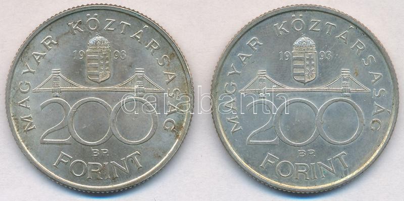Leírás: 1993. 200Ft Ag "MNB" (2x) T:2