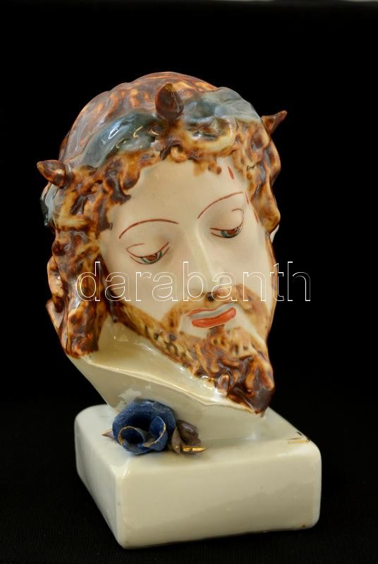 Leírás: Jézus-fej, olasz porcelán, kézzel festett, jelzett, apró kopásnyomokkal, m: 16 cm
