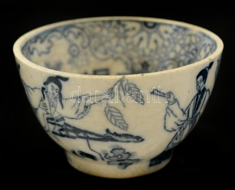 Leírás: Szaké csésze, matricás, jelzett, máz alatti hajszálrepedésekkel, m:4 cm