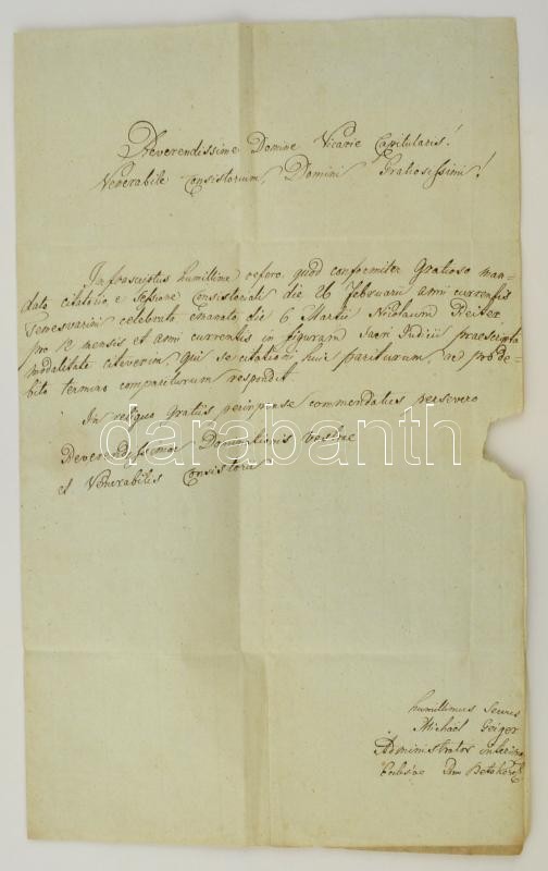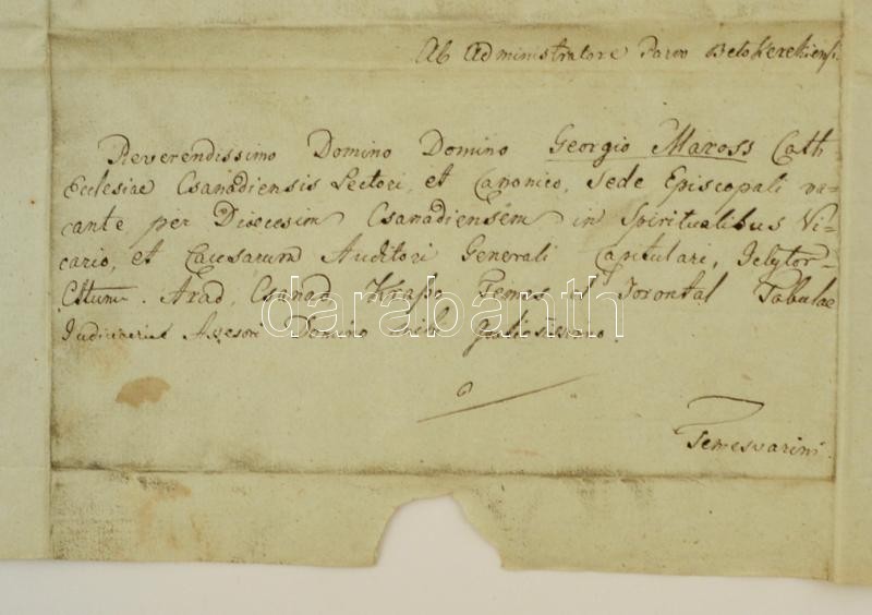 Leírás: 1833 Maross György csanádi kanonok, 1848-as dicstelen szereplő részére írt levél a becskereki plébánostól