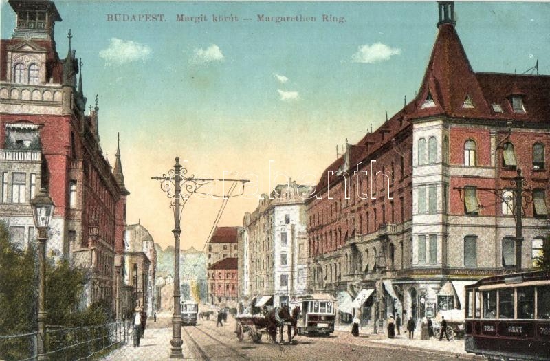 Leírás: Budapest II. Margit körút, villamosok, Margit Park kávéház (EK)