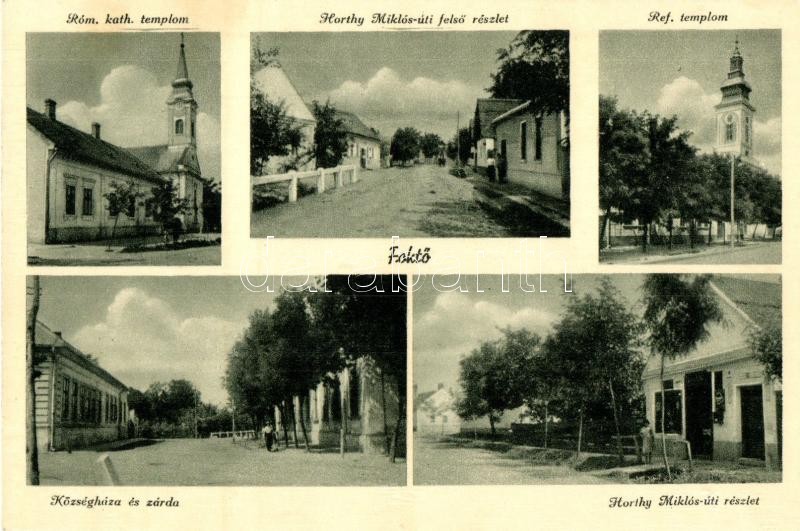 Leírás: Foktő, Római katolikus és református templomok, Horthy Miklós út, Községháza és zárda