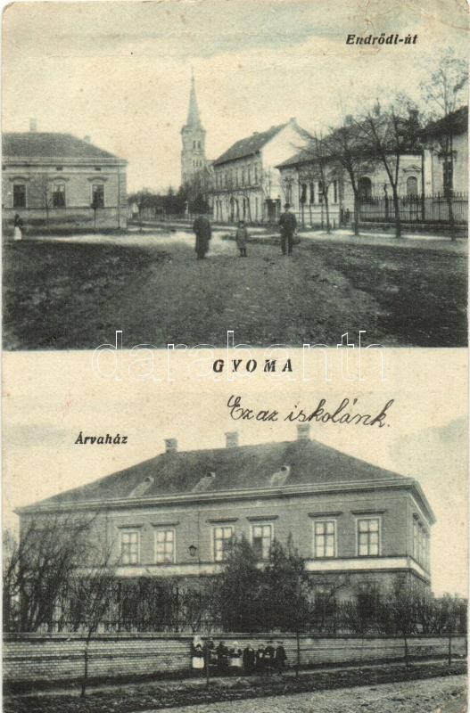 Gyoma, Endrődi út, Árvaház, Klein Vilmos kiadása (r) https://www.darabanth.com/hu/291-Gyorsarveres/291.0/Kepeslapok/Magyarorszag~400005/Gyoma-Endrodi-ut-Arvahaz-Klein-Vilmos-kiadasa-r~II1537253