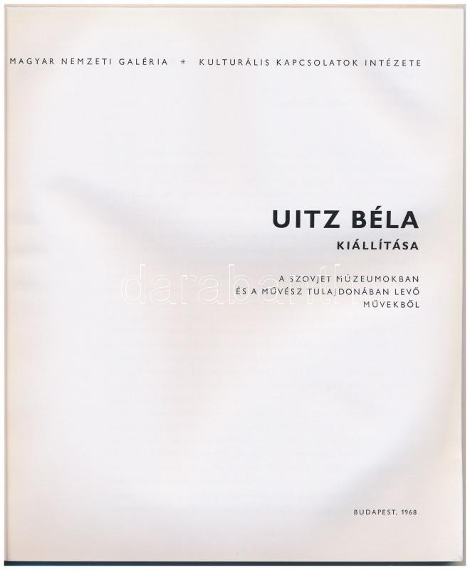 Uitz Béla kiállítása. A szovjet múzeumokban és a művész tulajdonában lévő művekből. Bp., 1968, Magyar Nemzeti Galéria-Kulturális Kapcsolatok Intézete. Kiadói papírkötés. Jó állapotban.