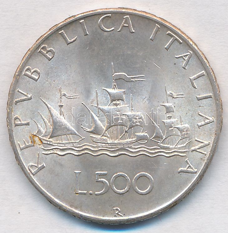 Italy 1966R 500 Lire ... https://www.darabanth.com/hu/291-Gyorsarveres/291.0/Numizmatika/Kulfoldi-fem-es-ezustpenzek~200013/Olaszorszag-1966R-500L-Ag-Kolombusz-hajoi-T2--Italy-1966R-500-Lire-Ag-Colombus-ships-CXF--K~II1540068
