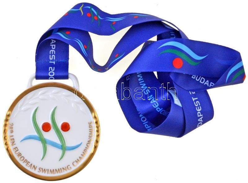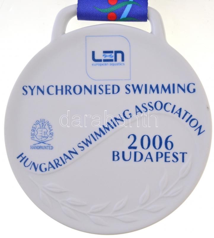 2006. "28. Úszó-Európa-Bajnokság / Szinkronúszás" jelzett Herendi porcelán díjérem (3x) arany, ezüst és bronzérmek, angol nyelven feliratozva, mellszalaggal, eredeti szervezői (?) kartondobozban (85,5mm) T:1 / Hungary 2006. "28th European Swimming Championship / Synchronised Swimming" marked Herendi porcelain medal (3x) gold, silver and bronze medals, in english language on ribbon, with genuine organizers(?) cardboard box (85,5mm) C:UNC