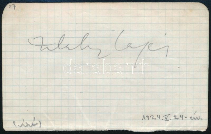 1924 Zilahy Lajos író aláírása papírlapon https://www.darabanth.com/hu/292-Gyorsarveres/292.0/Festmeny-mutargy-papirregiseg-egyeb/Alairas~18/1924-Zilahy-Lajos-iro-alairasa-papirlapon~II1543267