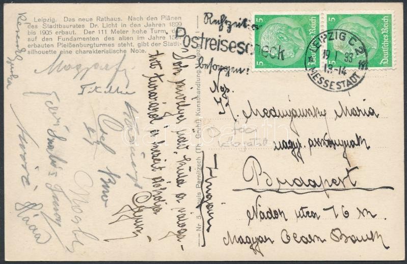 Leírás: 1933 A futball válogatott csapattagjainak aláírása hazaküldött képeslapon(Korányi, Bíró, Cseh, Háda, Szabó, Turay)