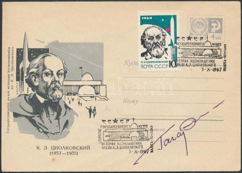 Jurij Alekszejevics Gagarin (1934-1968) szovjet űrhajós aláírása emlékborítékon /